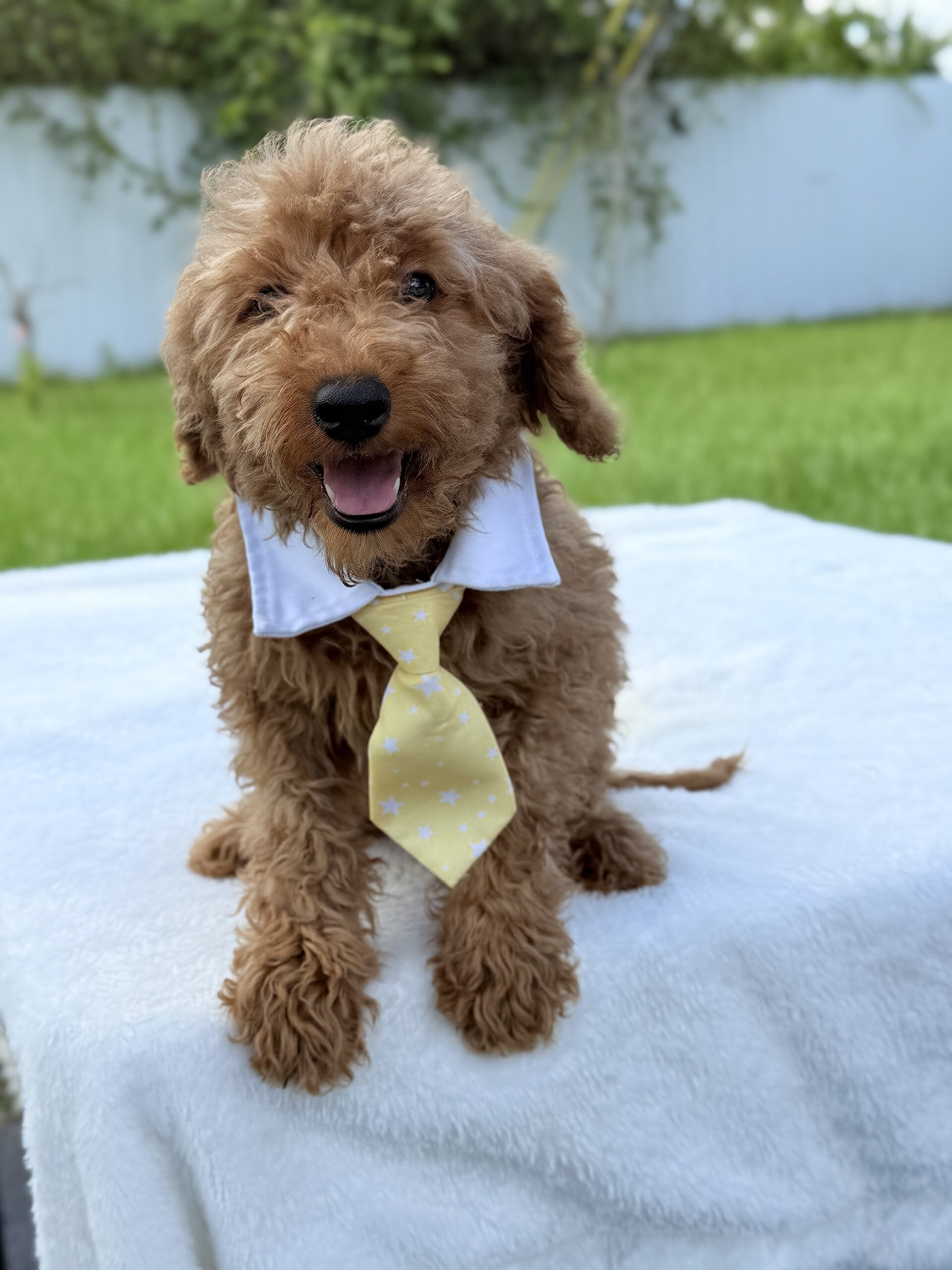 This beautiful F1b Small Medium Goldendoodle (male) combines sweetness, intelligence, and an ideal size for any lifestyle.