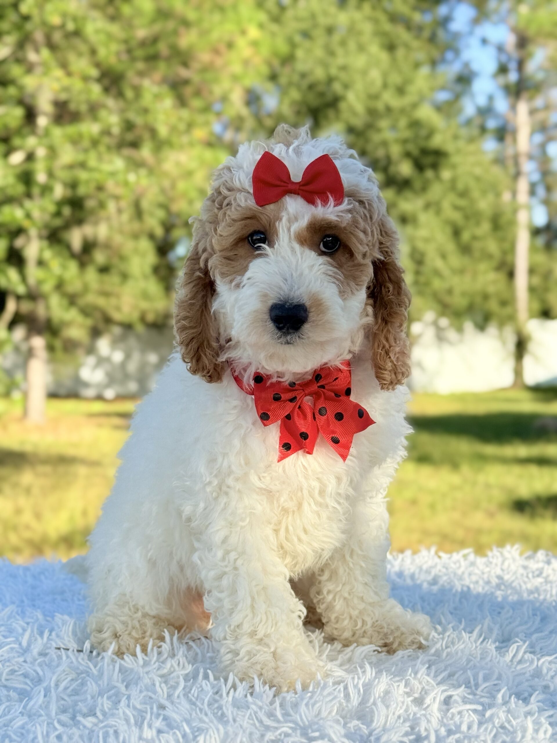 An adorable F1bb Mini Goldendoodle male, Romeo is small, loving, and ready to be your new best friend.