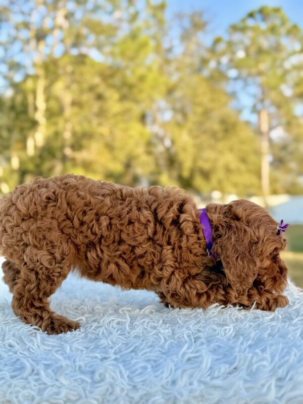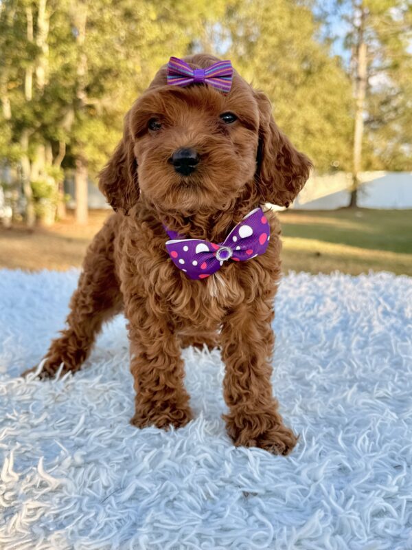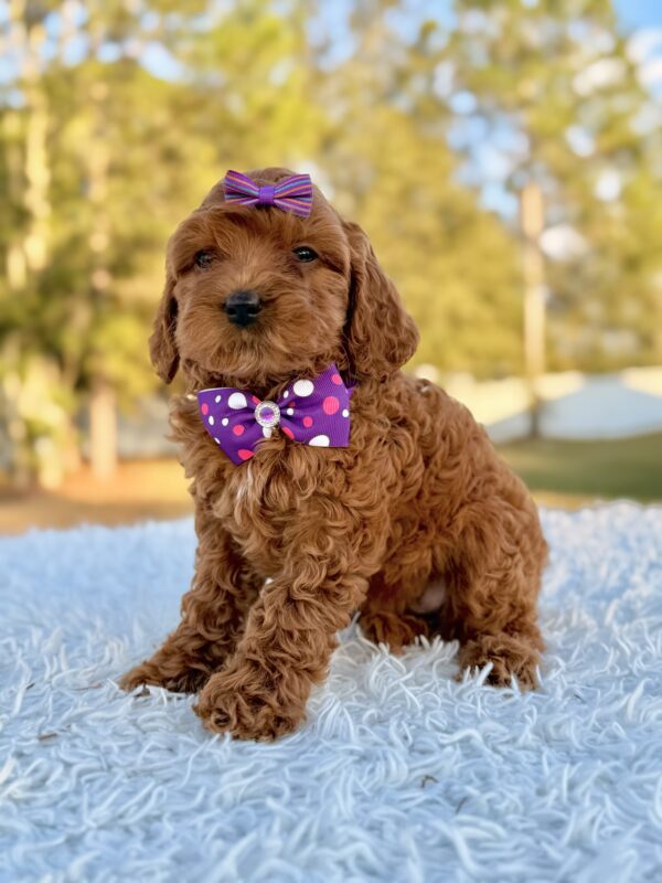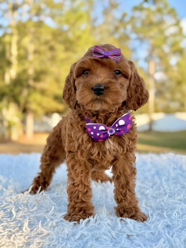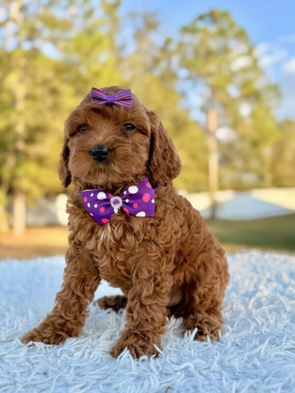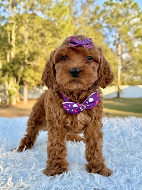 Bliss is affectionate, people-oriented, intelligent, and adaptable. Her calm yet playful personality makes her a wonderful fit for families, couples, or individuals looking for a loving Toy Goldendoodle.