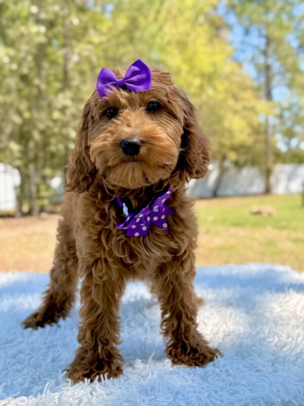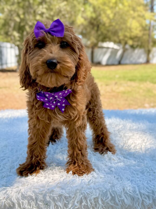 If you’re searching for the ideal Toy Goldendoodle, Love could be just the perfect match. She’s a lovable, well-socialized puppy with a gentle temperament and a lovely low-shedding coat. Raised with love and care, Love is blossoming into a caring, dependable, and wonderfully balanced family friend.