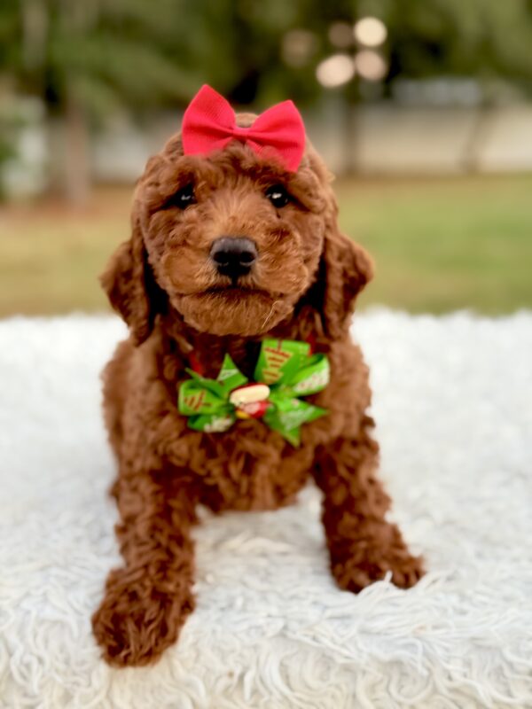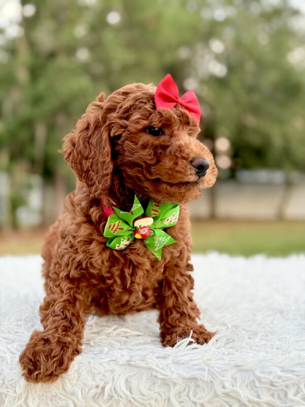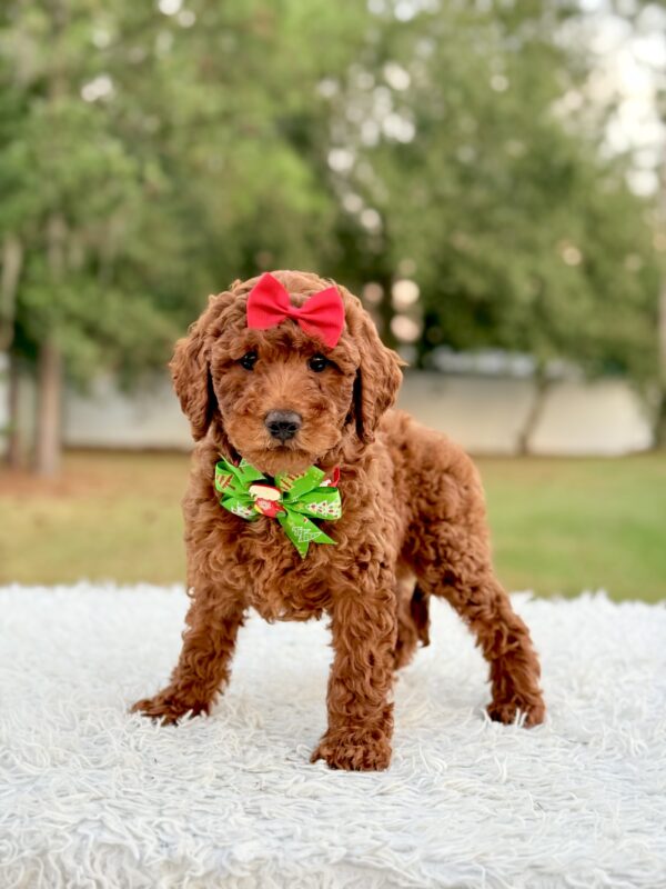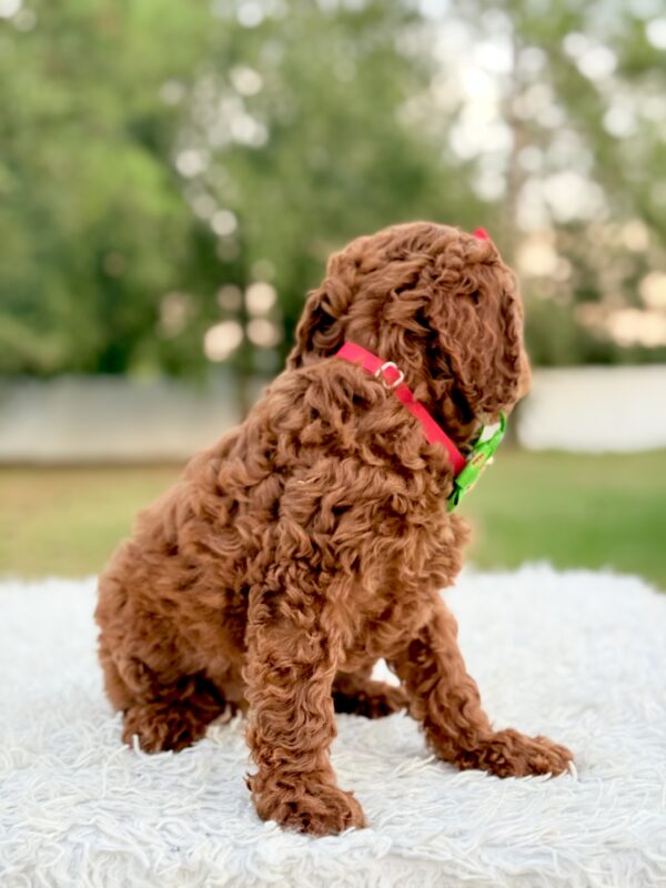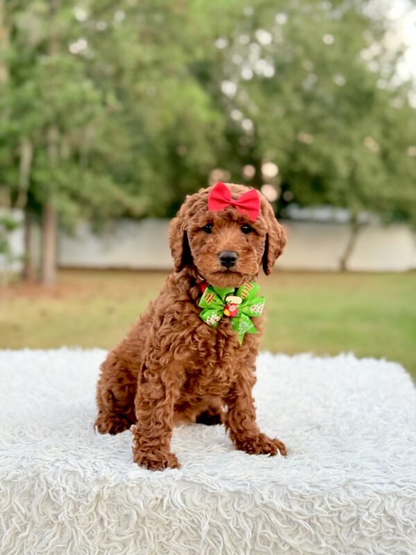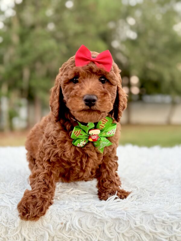 Mary is affectionate, curious, and quick to bond. She’s ideal for families, first-time pet owners, and allergy-sensitive homes. The perfect Mini Goldendoodle puppy for anyone looking for companionship and love.