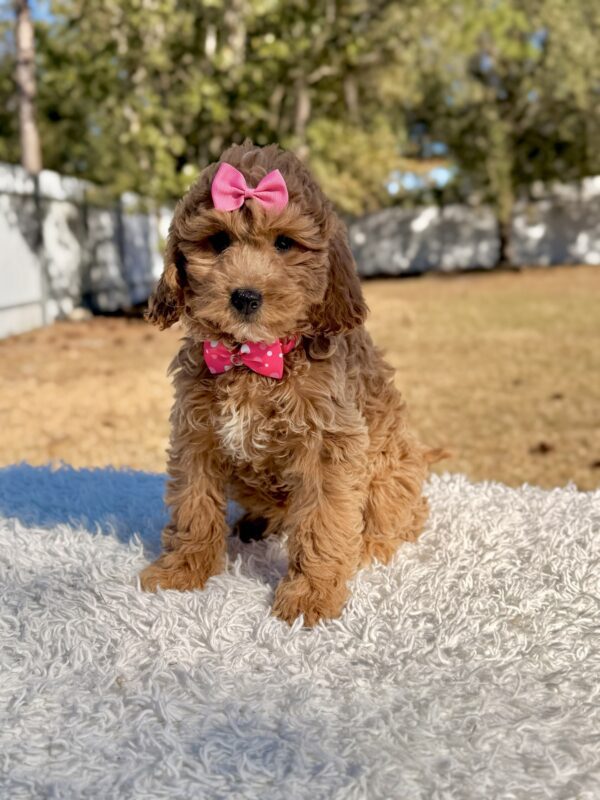Are you searching for the ideal Goldendoodle puppy? Sunshine is a beautiful Small to Medium Goldendoodle with a gentle nature, lively personality, and a soft, low-shedding coat. She is ready to be the loving companion your family has been waiting for.