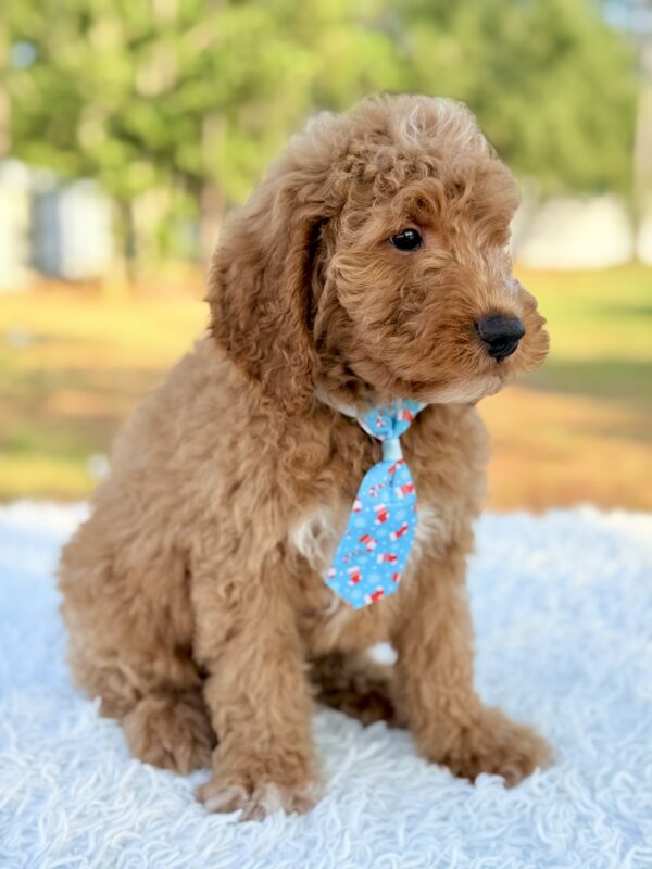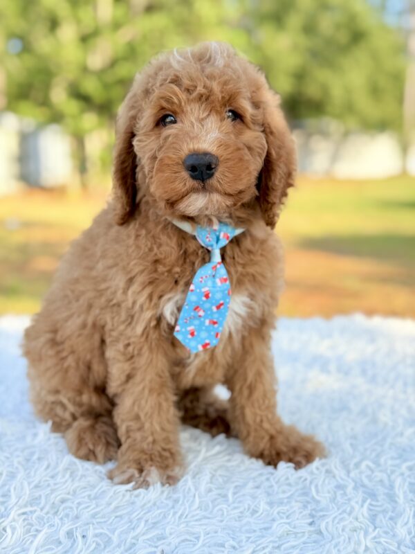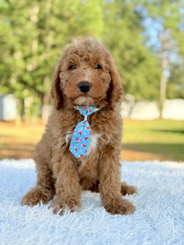Looking for the perfect Goldendoodle puppy? Sean is a handsome Small Medium Goldendoodle with a loving personality, bright temperament, and a soft, low-shedding coat. He’s ready to become the loyal companion your family has been waiting for.